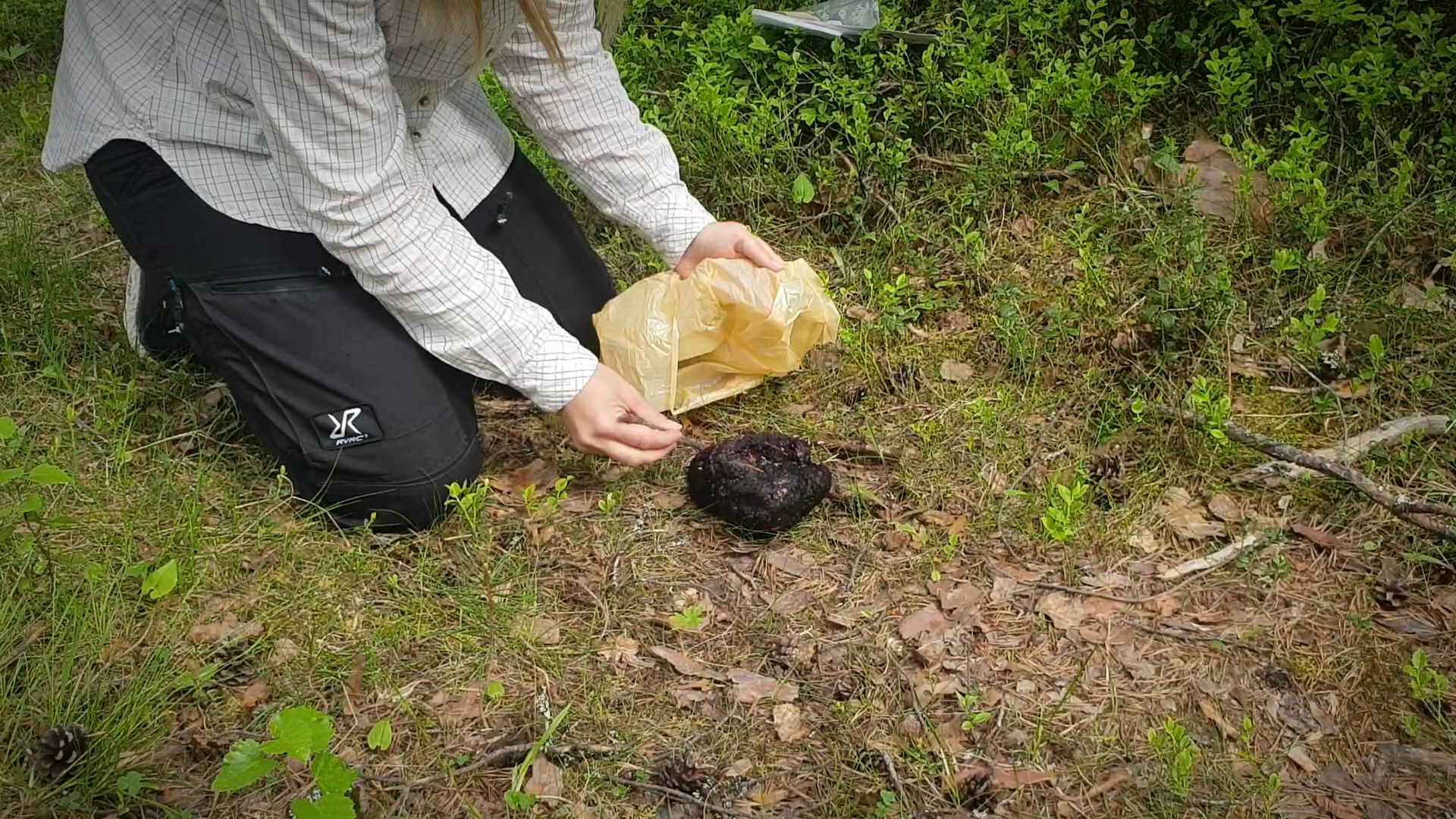 Det är väldigt enkelt att samla in björnspillning, en liten klick i en vanlig plastpåse eller direkt i ett insamlings-kit och sedan posta det till Naturhistoriska museet som tar hand om proverna. Man kan sedan följa sin spillning via rovbase.se.