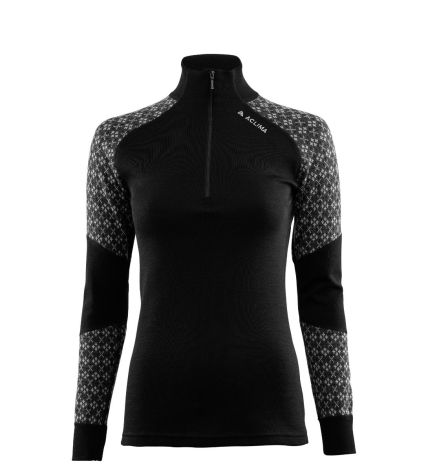 DesignWool Glitre Mockneck är en långärmad tröja med låg krage och dragkedja för justering av ventilation. Sömmarna är platta för att minimera irritation mot huden. Det stiliga mönstret löper från skuldran mot armbågen och tas upp igen nederst på ärmen. Aclimalogga på vänster axel. DesignWool är härliga och bekväma ullplagg som fungerar lika bra som ett sportigt plagg till vardags eller som ett värmande lager på fjälltur. Ett mjukt och varmt material i 100% merinoull som fungerar utmärkt som första lager, direkt mot huden.