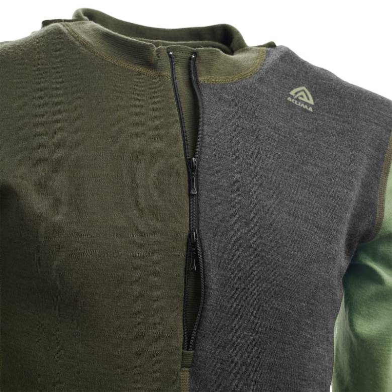 Aclima Warmwool Hoodsweater Olive Night/Dill/Marengo w. Zip