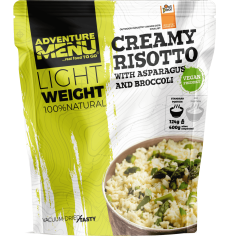 Kan förberedas med kallt vatten och värmas med ADM flameless heater (värmepåse). Inget kök behövs!