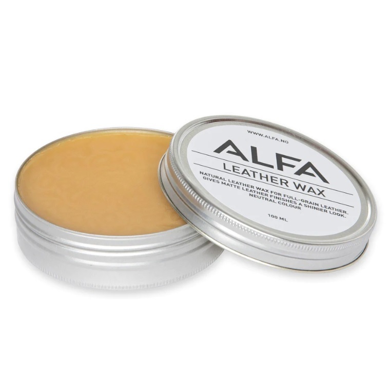 Ett naturligt vax som impregnerar och skyddar mot vatten och smuts. ALFA Lädervax återfuktar skinnet och lämnar en lätt glänsande hinna och bör därför endast användas på fullnarvsläder, det vill säga läder med slät yta. Produkten innehåller endast naturliga växt- och vegetabiliska ingredienser och är PFAS-FRI.