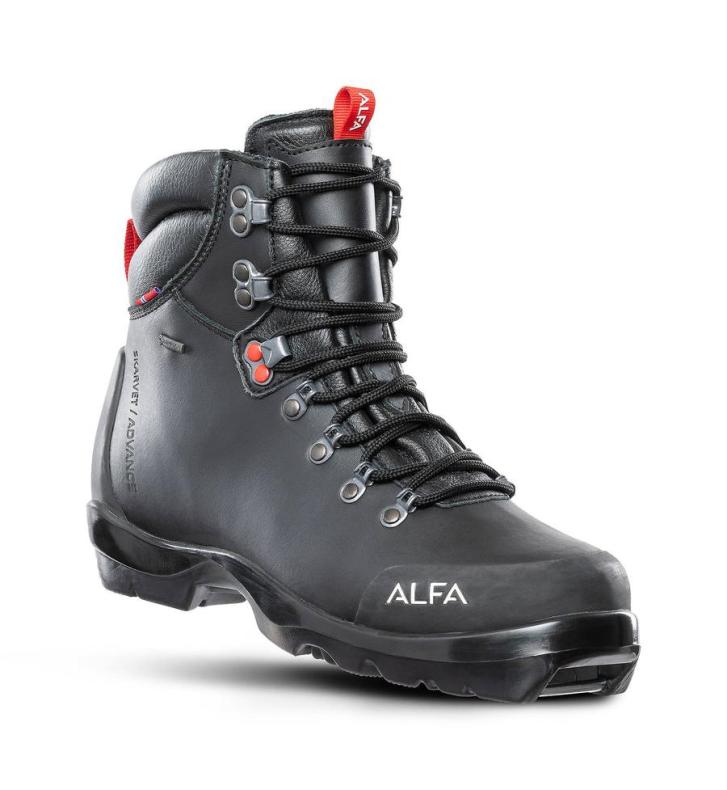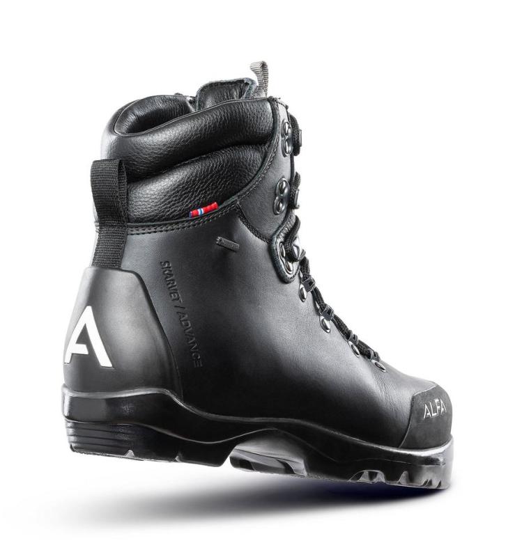 Varm och kraftig BC skidpjäxa i fullnarvat läder, för utmanande skidåkning på berg och fjäll utanför pistade skidspår. Skarvet Advance GTX är vinterfodrad med GORE-TEX, och har en värmeisolerande mellansula och anatomisk inläggssula. Främre delen av pjäxan är förstärkt för att skydda lädret från isig snö. Pjäxan har också en skön passform i hälen för att förhindra blåsor. Extrema snöförhållanden kan ha särskilt mycket slitage på materialen i pjäxan. Vid skidåkning i sådana förhållanden förväntas ökad slitage.