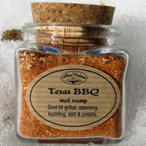 Texas BBQ är god till grillat, stekning, kyckling, kött och potatis. En kryddblandning med torkad svamp klar att använda. Just denna krydda är speciellt god vid grillning. Förpackad i glasburk om 80 ml.