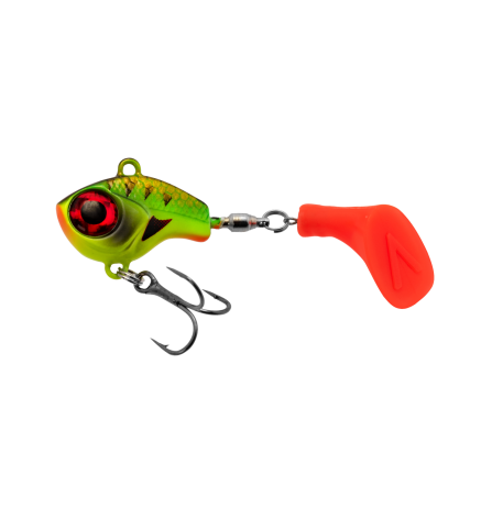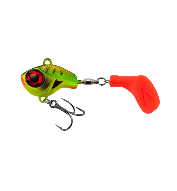 Armada EyeCatcher Shad 12g Firetiger är en spinnare med ShadTail som gör att den får väldigt ettrig och oregelbunden gång. Paddeln på Armada EyeCatcher Shad 12g blir likt en propeller som garanterat väcker uppmärksamhet bland sjöns Abborrar.