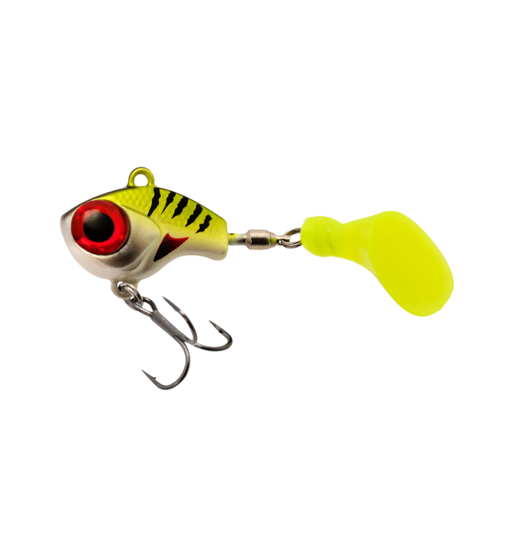 Armada EyeCatcher Shad 12g Green Devil är en spinnare med ShadTail som gör att den får väldigt ettrig och oregelbunden gång. Paddeln på Armada EyeCatcher Shad 12g blir likt en propeller som garanterat väcker uppmärksamhet bland sjöns Abborrar.