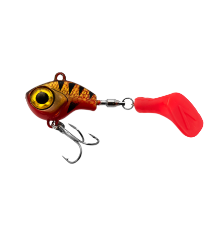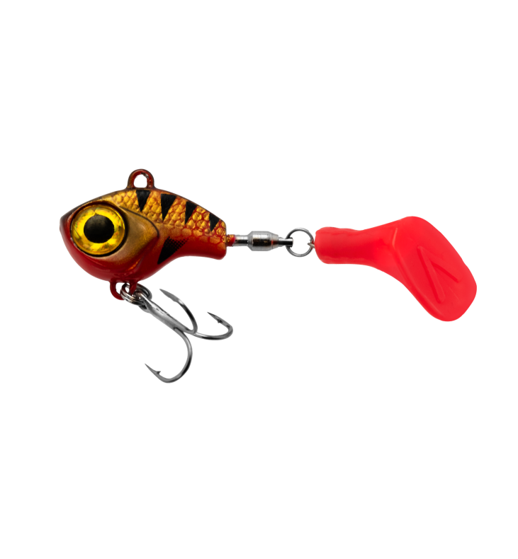 Armada EyeCatcher Shad 12g Red Perch är en spinnare med ShadTail som gör att den får väldigt ettrig och oregelbunden gång. Paddeln på Armada EyeCatcher Shad 12g blir likt en propeller som garanterat väcker uppmärksamhet bland sjöns Abborrar.