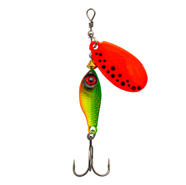 Armada GyroSpinner 12g Firetiger Red är en spinnare med kompakt kropp som gör att du kastar långt, stor sked för synlighet och otrolig att fånga fisk!