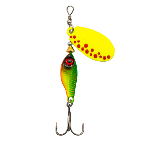 Armada GyroSpinner 12g Firetiger Yellow är en spinnare med kompakt kropp som gör att du kastar långt, stor sked för synlighet och otrolig att fånga fisk!