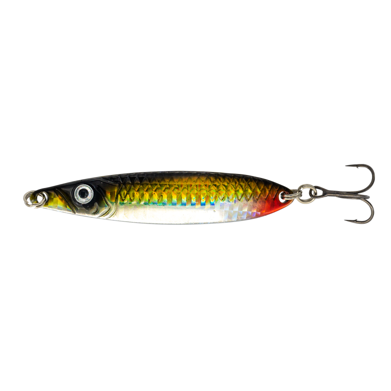 Armada Slash Fulton 24g Flash Olive är ett skeddrag med en oemotståndlig gång, het färg, silvrig baksida och krokarna är av högsta kvalité ifrån BKK.