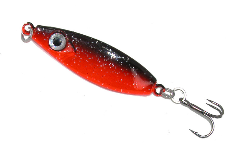 Armada TroutCatcher 13g Black Red med en vaggande gång som öringen ej kan motstå eller låt betet sjunka ned till botten där rödingen lurar. Med dubbla fjäderringar till kroken gör att fisken inte lossnar lika lätt.