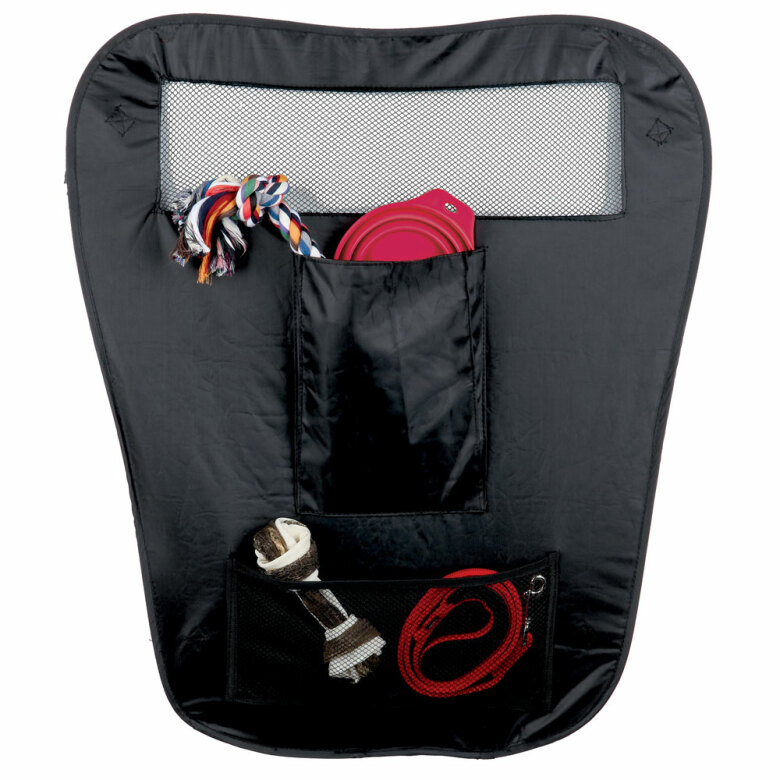 Baksätesavgränsare som förhindrar hunden från att klättra över till framsätet. Tillverkad i nylon med fickor 60/44x69cm. Svart. Stadig tack vare metallram. Nätinsats för fri sikt. En stor ficka och nätficka. Enkel att rengöra, montera och demontera.