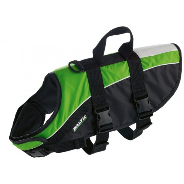 Baltic mascot har mjukt flytmaterial, reflex och mörka sidor för att inte missfärgas. Hundflytväst med kraftigt lyfthandtag och breda band.