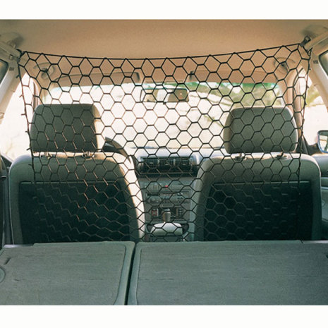 Bilnät. Cirka 1×1 m, svart. Olika fästmöjligheter, till exempel på dörren eller takskenan. Innehåller material för fastsättning.