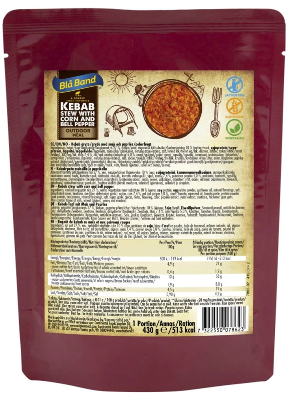 Hem » Vildmark » Äta ute » Turmat » Blå Band Mjukkonserv Kebabgryta med majs