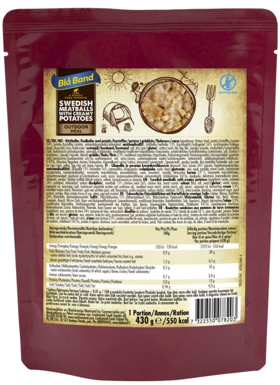 Hem » Vildmark » Äta ute » Turmat » Blå Band Mjukkonserv Köttbullar med krämig potatis