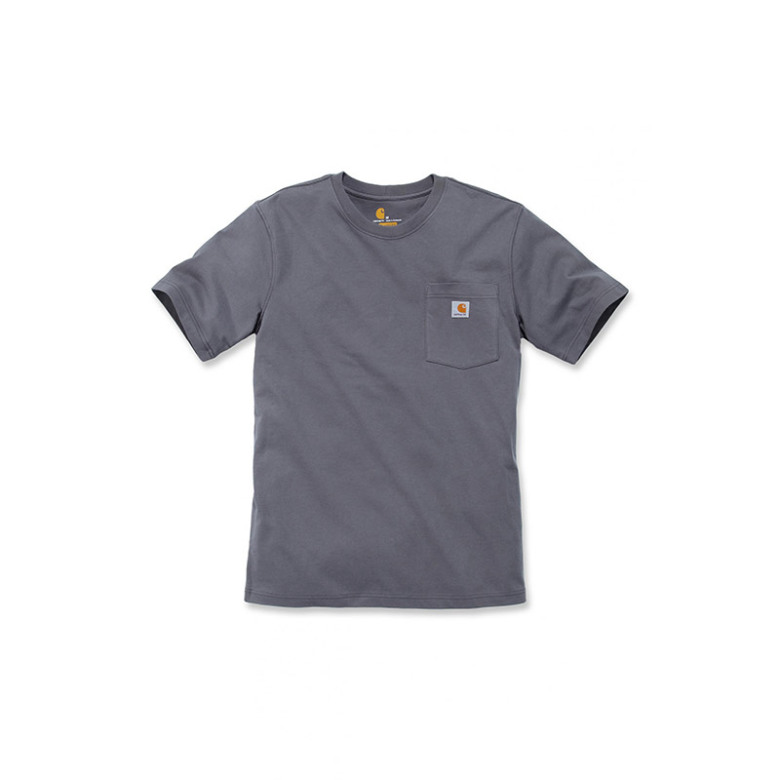 100 % bomullRibbstickad crewneckSidosömkonstruktion minimerar vridningFicka på vänster bröst med påsydd Carhartt-etikettTagglös nacketikett