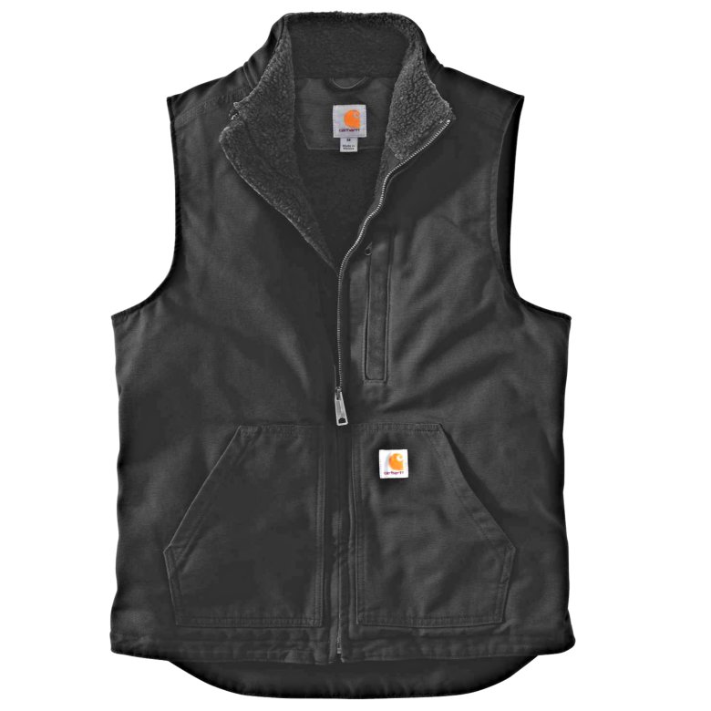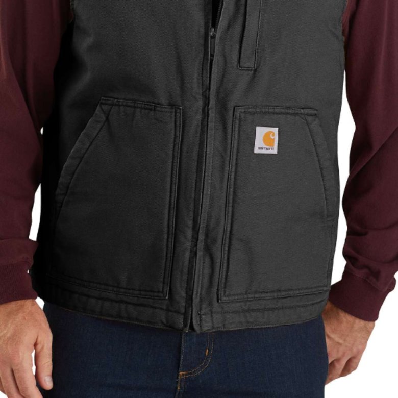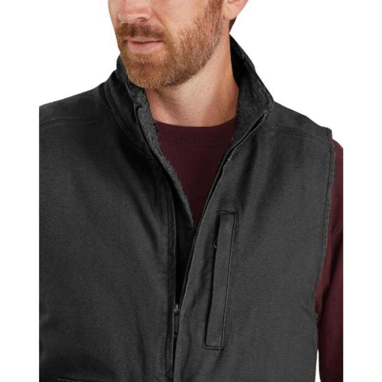 Under en kylig dag, snör på och gå ut i den här västen för extra värme. Gjord med vår robusta bomullsand, den är sherpa-fodrad på insidan för extra värme och komfort. En blixtlåsficka på bröstet och två innerfickor ger förvaring för dina verktyg.
