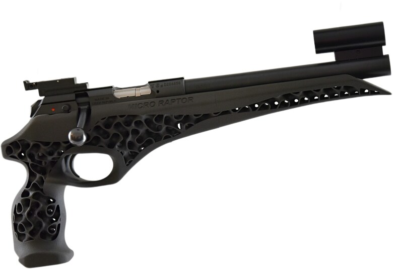 Vår Micro Raptor finns i 2 piplängder, Production 9¼” och Unlimited 15”, med möjlighet att köpa till pipor och stockar även för gevär.