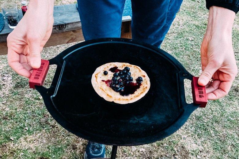 Svensktillverkad stekhäll i svenskt kvalitetskolstål, lättviktsmodell, som kommer med en specialanpassad väska med ett unikt bärsystem som är smidig att ta med sig på turen.