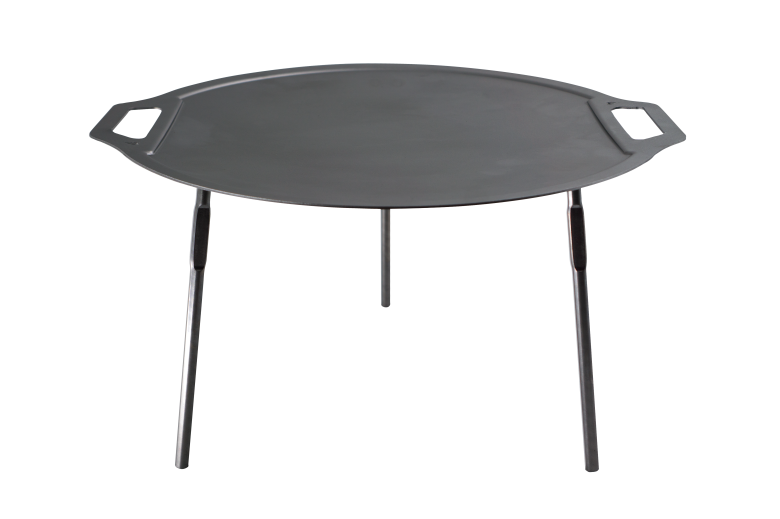 Svensktillverkad stekhäll i svenskt kvalitetskolstål, lättviktsmodell, som kommer med en specialanpassad väska med ett unikt bärsystem som är smidig att ta med sig på turen.