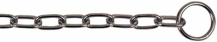 Helstryphalsband för koppelträning och dressyr. Förkromad stål. Kättingstryp med raka ovala länkar. Trasslar inte in i pälsen, passar även långhåriga hundraser.