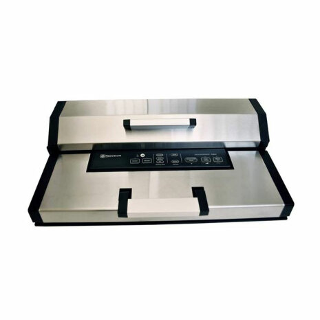 Finnvacum Pro Finnvacum Pro en av de mest kraftfulla kvalitetsmaskiner på marknaden. Maskinen är till största del byggd av rostfritt stål och är dessutom utrustad med dubbel svets, allt för att skapa den bästa möjliga vakuumförpackningen. I maskinen finns även en inbyggd rullhållare vilket medför att användaren efter behov kan använda både påsar och rullar. Med en svetsbredd på hela 400 mm samt dubbla vakuumpumpar utlovas maximalt vakuumtryck och stor flexibilitet. Finnvacum Pro är den mest prisvärda kvalitetsmaskinen på marknaden och passar utmärkt till såväl restauranger, jaktlag och mindre matproducenter .Tekniska data Modell Finnvacum Pro Effekt 200W, 220-240V /50Hz Pumpkapacitet Dubbelpump, 30 liter/minut Svetsyta 400mm, dubbelsvets Stomme Rostfritt stål Certifikat CE, SGS