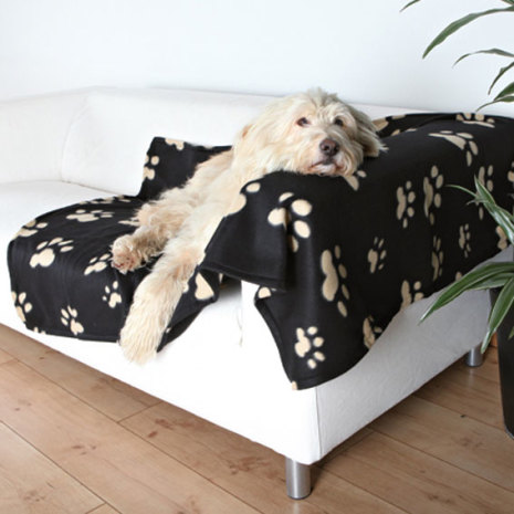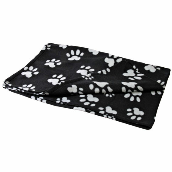 Mjuk fleecefilt med fint tassmönster. Skyddar dina golv och möbler från smuts och djurhår. Skön extra värme för hunden i bädden, bilen eller på golvet. Tål maskintvätt 30°C. Storlek: 150x100 cm.