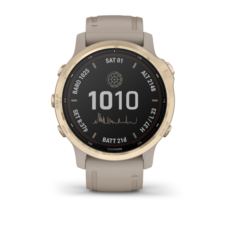 Garmin Fenix 6S Pro solar har en lins för solenergiladdning med Power Glass™-glas och anpassningsbara strömhanteringslägen som gör att den kan vara påslagen och förbli driftklar i flera veckor.