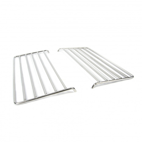 Haghus Grillgaller är ett par sidogaller i rostfritt stål för kaminmodell 120. Dessa torkar kläder, strumpor, handskar och gör matlagningen lättare.