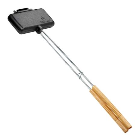 Ett smörgåsjärn i gjutjärn från Hällmark. Smörgåsjärnet används över öppen eld. Mått på grillytan cirka 20 x10 cm och har plats för två smörgåsar.