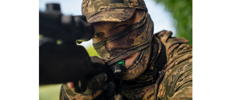 Deer Stalker camo mesh-halsstycket är ett superpraktiskt ansiktskamouflage som du lätt kan ha med i fickan när du är ute på jakt. Halsstycket är tillverkat i ett mycket lätt, luftigt och töjbart material, och det har en övertäckt öppning för munnen. Därför är halsstycket bekvämt att ha på sig, samtidigt som du kan använda olika lockpipor även om det på dig.