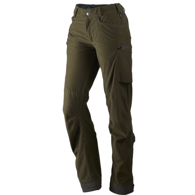 Dam byxor för studsarjakt i ljudlöst material med det vattentäta och ventilerande membranet Härkila Weather System™, utformat för jaktbruk. Praktiska funktioner som ventilationsöppningar med dragkedja bakom benfickor, patronhållare i ficka, lättåtkomliga fickor fram och justerbar vidd vid knävecken.