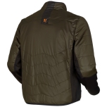 Härkila Heat-jackan är tillverkad i ett fodrat lättviktsmaterial och har stretchmembran i sidorna och på ärmarna, vilket ger bättre rörelsefrihet. Invändigt sitter ett värmereflekterande foder som både förhindrar värmeförlust och förstärker effekten av jackans värmemembran. Kragen är fodrad med mjuk fleece. På de mest köldutsatta ställena på överkroppen – mellan ryggstyckena och i ländryggen – sitter insydda värmemembran som med hjälp av den tillhörande smartphone-appen kan ställas in på exakt önskad temperatur mellan 30 och 52 grader C. Membranen kan också ställas in på 38, 46 eller 52 grader C med hjälp av tryckknappen på bröstet, utan appen, så att du inte är beroende av din smartphone. Till skillnad från äldre värmeteknologier är värmemembranen så flexibla att de kan vikas ihop tillsammans med det plagg som de är insydda i. Dessutom kan jackan utan problem tvättas i maskin. I jackans högra ficka sitter ett vattentätt USB-uttag, så att du kan ansluta en valfri powerbank. Med en powerbank på 10 000 mAh kan jackan hålla den högsta temperaturen på 52 grader C i cirka 7 timmar vid en utomhustemperatur på 0 grader C. För att spara ström går värmemembranen automatiskt i vila när jackan har uppnått den önskade temperaturen. Därefter slås de på igen om temperaturen sjunker 1–2 grader under den önskade nivån, utan att du märker det. På så vis är jackan värmereglerande eftersom värmefunktionen automatiskt slås av om du t.ex. får upp värmen under hög aktivitet, och slås på igen när du sitter eller står stilla. Jackan har två sidfickor, en innerficka, en radioficka på vänster sida och en medföljande vattentät packpåse att packa ner jackan i.