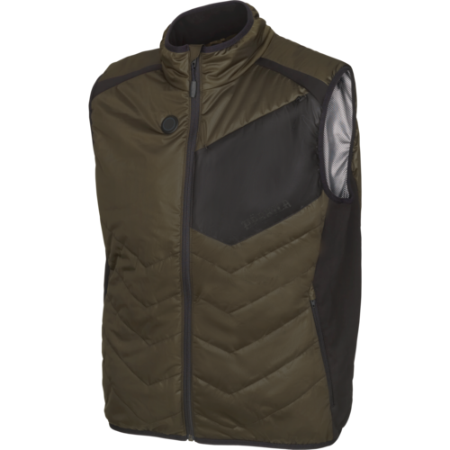 Härkila Heat Väst Willow Green/Black är en fodrad värmeväst med hög krage och integrerade värmemembran så att du kan exakt den önskade temperaturen.
