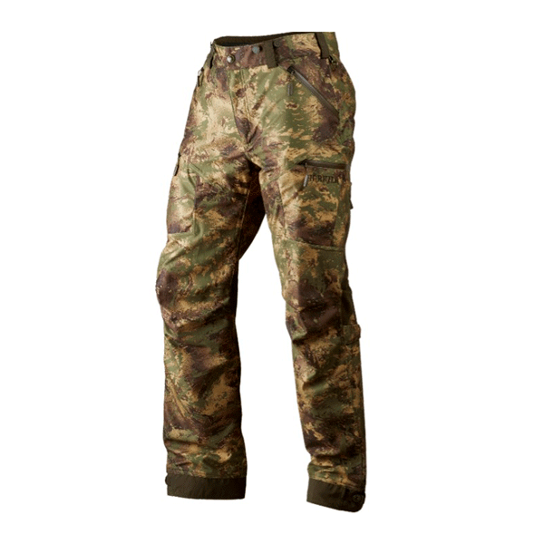 Härkila Lynx är byxor i ljudlöst stretchmaterial med lättåtkomliga fickor fram, patronhållare i benfickan, justerbar vidd i knävecken, snölås, ventilationsöppningar med dragkedja och vattentäta dragkedjor.