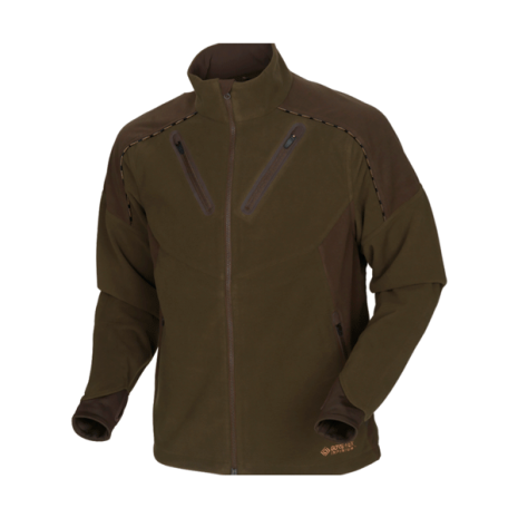 Mountain Hunter-fleecejackan är tillverkad i ett mjukt microfleecematerial. Jackan är utrustad med ett GORE-TEX® INFINIUMTM WINDSTOPPER®-membran som är 100 % vattentätt och har bättre andningsförmåga än det vattentäta membranet i Mountain Hunter-skalstället. Dessutom har fleecematerialet fått en DWR-behandling, vilket står för Durable Water Repellent, så att jackans yta är smuts- och vattenavvisande. På insidan har jackan ett meshfoder som hjälper till att leda bort fukt från kroppen. Mountain Hunter-fleecejackan har två snedställda fickor fram samt radiofickor på båda sidor. Dessutom har jackan hög krage, tvåvägs dragkedja och töjbara ärmslut med tumhål. Nederkanten är justerbar.