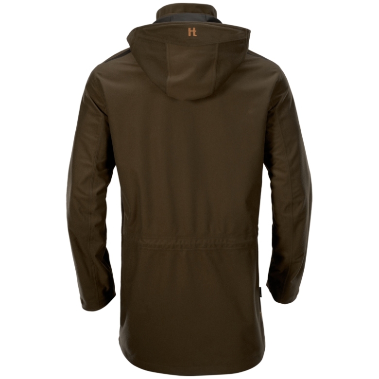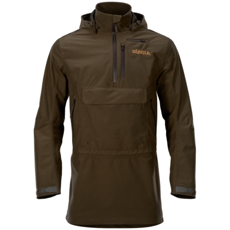 Mountain Hunter-anoraken är tillverkad i ett borstat och tyst trikåmaterial, och den har GORE-TEX®-membran som gör den 100 % vind- och vattentät. Anoraken har fått en Durable Water Repellent (DWR)-behandling som gör materialet vatten- och smutsavvisande. På vänster sida har den en tvåvägs dragkedja som löper hela vägen från nederkanten till armhålan. Därmed går det enkelt att få på och av anoraken samtidigt som du kan öppna dragkedjan när du behöver svalka dig. Mountain Hunter-anoraken har en stor genomgående ficka med snedställda dragkedjor i båda sidor. Dessutom har den en rymlig bröstficka med dragkedja för kikare eller liknande. Bröstfickan har dräneringshål nedtill samt ett stort lock med ljudlöst magnetlås. Till vänster har den en radioficka med både vertikal och horisontell dragkedja som dels fungerar som antennuttag, dels gör det lätt att lägga i och ta ut en radio eller GPS-enhet ur fickan. Anoraken har avtagbar huva, tvåvägs dragkedja och justerbara ärmslut, och den kan justeras i huvan och i midjan med en elastisk dragsko.