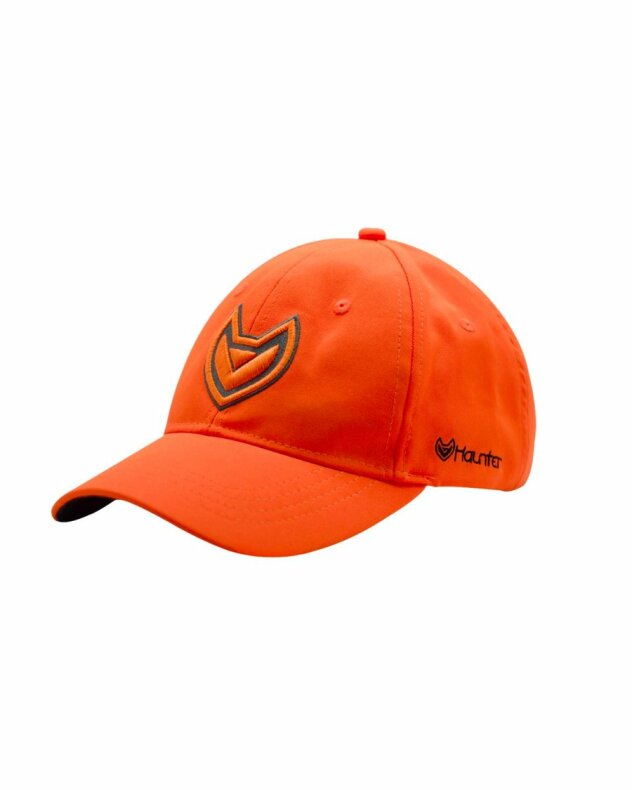 En sportigare keps med skön och stretchig passform i orange kulör som verkligen syns. Fäste för grankvist på sidan.