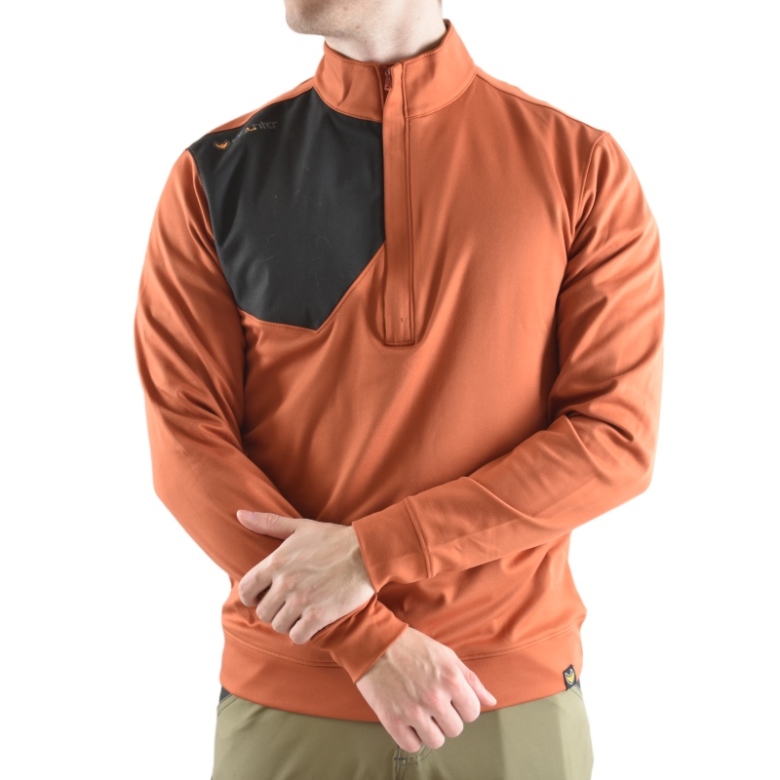 Haunter Ore Q-Zip Orange/Grå Pullover med kort dragkedja och med gun patch på höger axeln. Mjukt flossat tyg med fantastisk känsla. När du väl tagit den på vill du inte ta av den! 75% polyester och 25% spandex för optimal komfort och rörelsefrihet. Gun patch och förstärkningar i bomulls-/polyestercanvas.