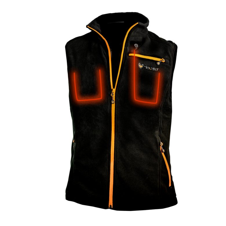 Haunter Värmeväst i skön fleece med värmeelement både på rygg och bröst. Tre värme lägen regleras enkelt med tryckknapp du enkelt kommer åt.