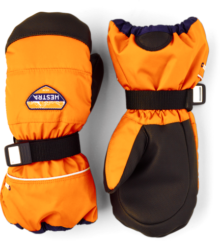 Hestra Kids CZone -Orange en slitstark tumhandske med vind-, vattentätt och ventilerade CZone membran. Resår i öppningen för att förhindra snö i vantarna och Primaloft isolering för extra värme.