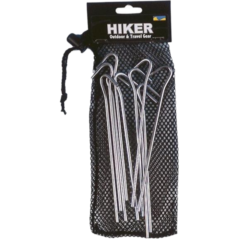 Standardtältpinnar från Hiker som fungerar för de allra flesta tälten. Levereras i 10-pack med en smidig meshpåse.