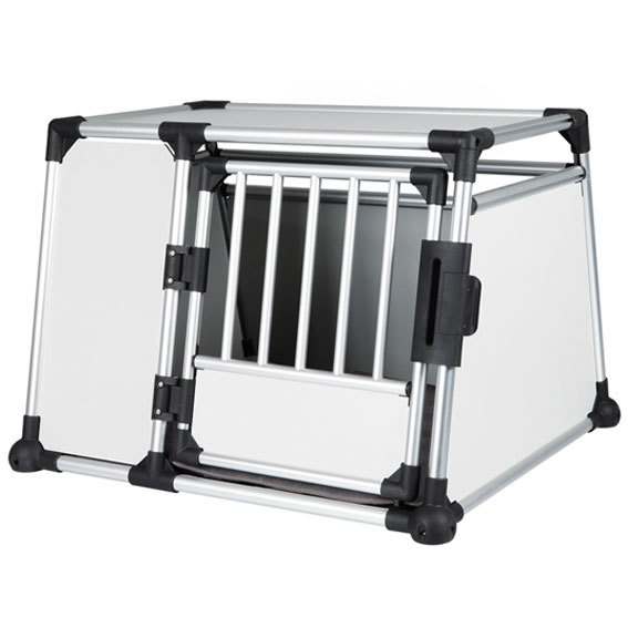 Hundbur i aluminium. Hög kvalitét, säker och väldigt tystlåten i bilen. Sluttande sidor som gör att den passar i de flesta bilar. Säkerhetslås på dörren. Anti-glid i botten och många ventilationshål för bra luftcirkulation.