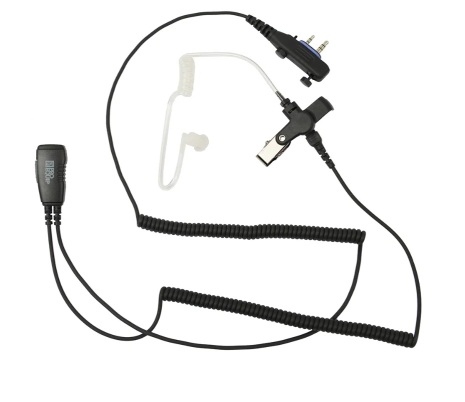 Icom ProEquip Pro-P180LA mini PTT Acousti Aurtube är ett headset med luftslang, secret service. Vinklad 2-pinskontakt med skruv för anslutning mot Icom radio med sidokontakt.