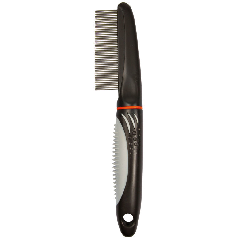 Kam med fina, rundade tänder för skonsam pälsvård. Plasthandtag med halkfritt gummigrepp. Längd 22 cm.
