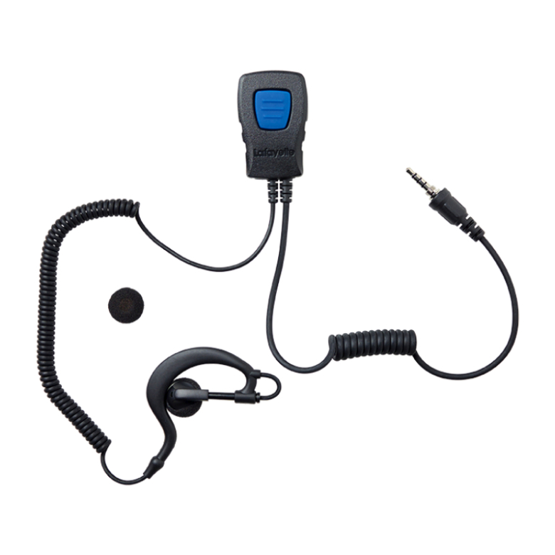 Ett miniheadset med PTT och inre öronmussla för Lafayette SMART. 3,5mm 4-polig gängad, stor sändartangent och metall klips.