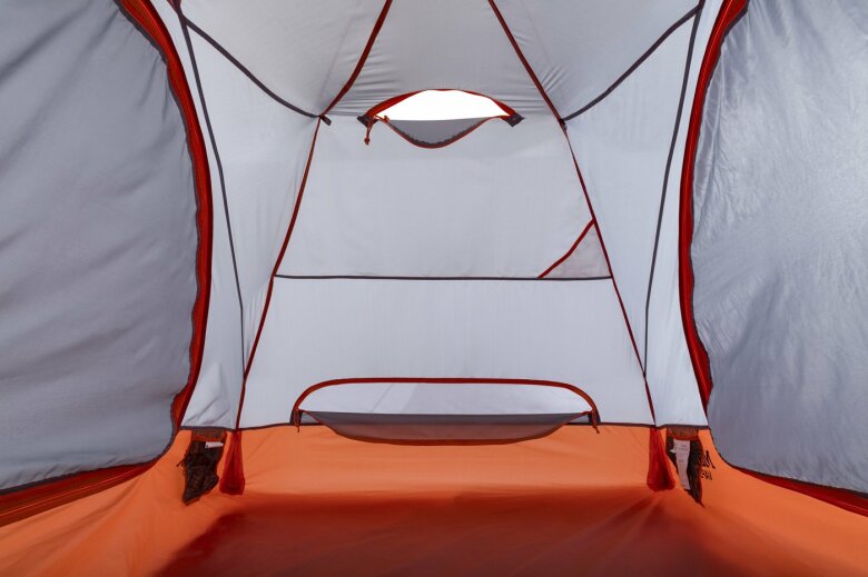 Tältet har två öppningar där du kan välja hur mycket dörrarna ska ventilera. Dragkedjorna är konstruerade för att vara så tysta som möjligt. Där tältet är som högst är det högt nog att sitta rakt i. Det finns fickor inuti tältet för förvaring och ficka för nattbelysningen.