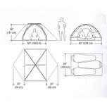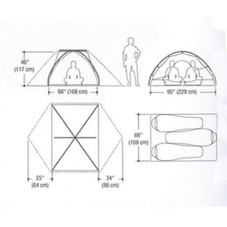 Tältet har två öppningar där du kan välja hur mycket dörrarna ska ventilera. Dragkedjorna är konstruerade för att vara så tysta som möjligt. Där tältet är som högst är det högt nog att sitta rakt i. Det finns fickor inuti tältet för förvaring och ficka för nattbelysningen.