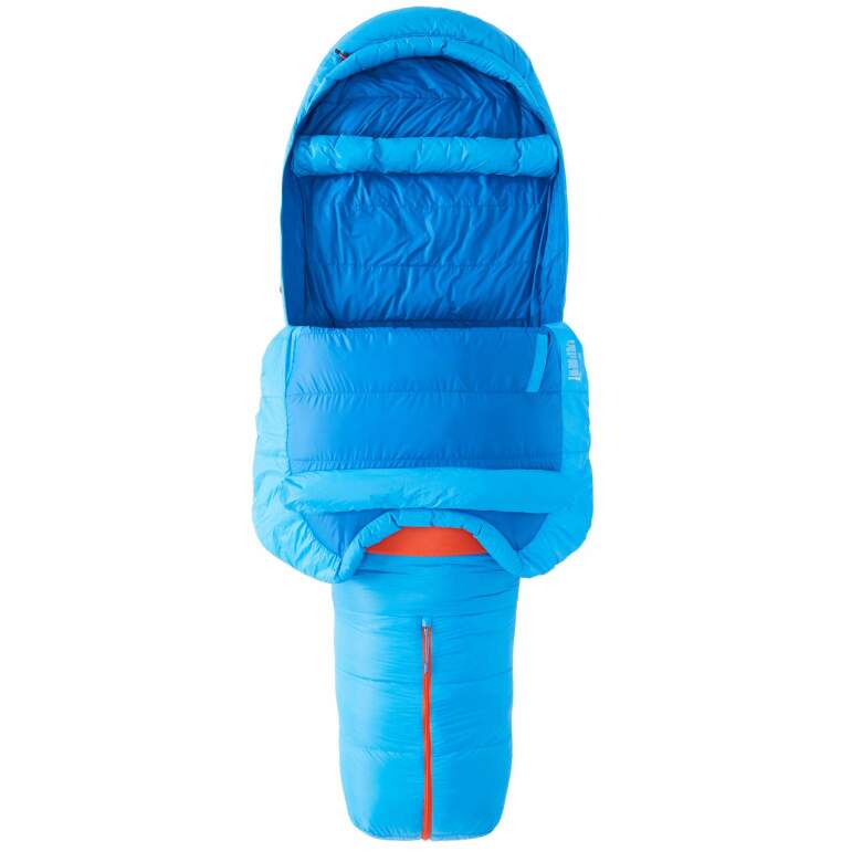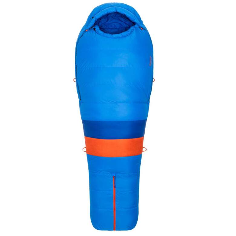 Marmot Wind-River reg 02 är en skön dunsovsäck passande för vintertemperaturer. Den kan packas med på de allra flesta vinterturer, förutom de allra kallaste. Fylld med 600 fillpower dun.