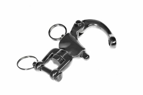 Liten och lätt karbinhake som är lätt att öppna om du faller vid skijoring eller behöver lossa hunden snabbt. En dragring med en säkerhetsstift öppnar omedelbart karbinhaken, även under tung belastning.